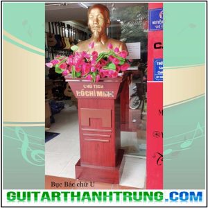 +) Bục đặt tượng Bác gỗ công nghiệp hoa sen